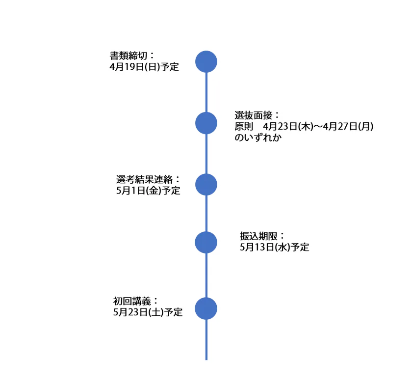 ・提出書類: 願書および1000字程度の志望動機のエッセイ