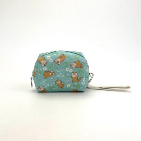 こちらがカワウソポーチ。ミント色の本体にホワイトのストラップがオシャレです。
