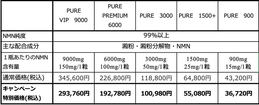 ●対象商品:NMN PUREシリーズ全商品(セット商品を含む)