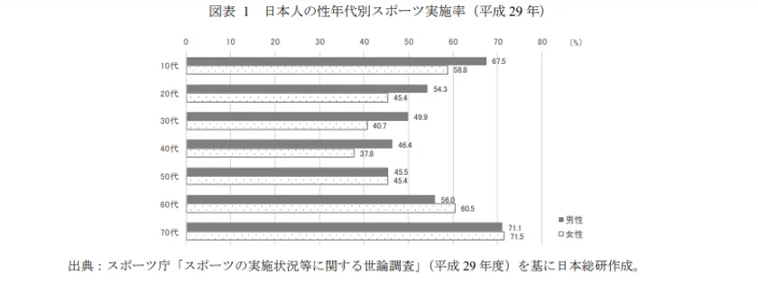 《日本人の性年代別スポーツ実施率(平成29年)/スポーツ庁》