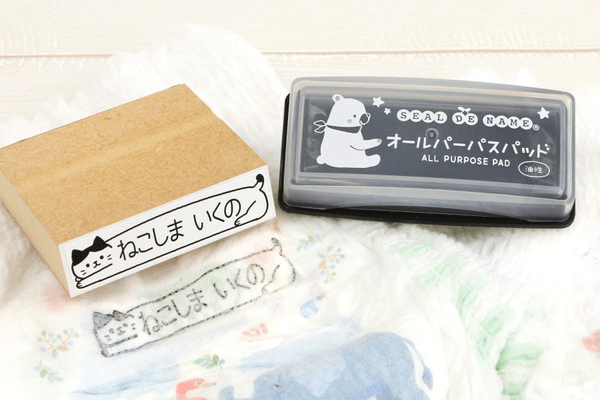 別売りの油性インク台オールパーパスパッド(スタンプ台)を使用すれば、布オムツやトレーニングパンツ、パンツと段階に応じてお使いいただくことができます。さらに、ランチョンマット、お昼寝布団カバー、上靴袋など、大きめサイズの持ち物のおなまえつけに最適です。また、学習ノートや先生が使用する「再提出」スタンプなど、お名前のみではなく使い方次第でさまざまなシーンでご利用いただけます。