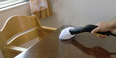 菌やウイルスの飛沫が心配な床やテーブル、ソファの掃除。約100℃の高温スチーム(蒸気)を安定して作れるケルヒャースチームなら、1~5往復させるだけでウイルスやカビ、バクテリアを99.99%除菌することが可能です。