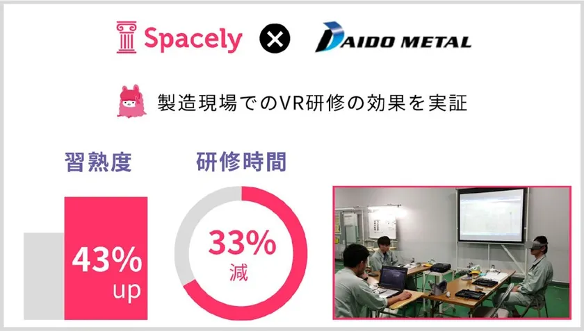 新規事業創出プログラム「東海オープンアクセラレーター」 大同メタル工業×スペースリー 研修習熟度43%アップや研修業務の33%効率化 実証結果を踏まえて製造業向けに協業を展開