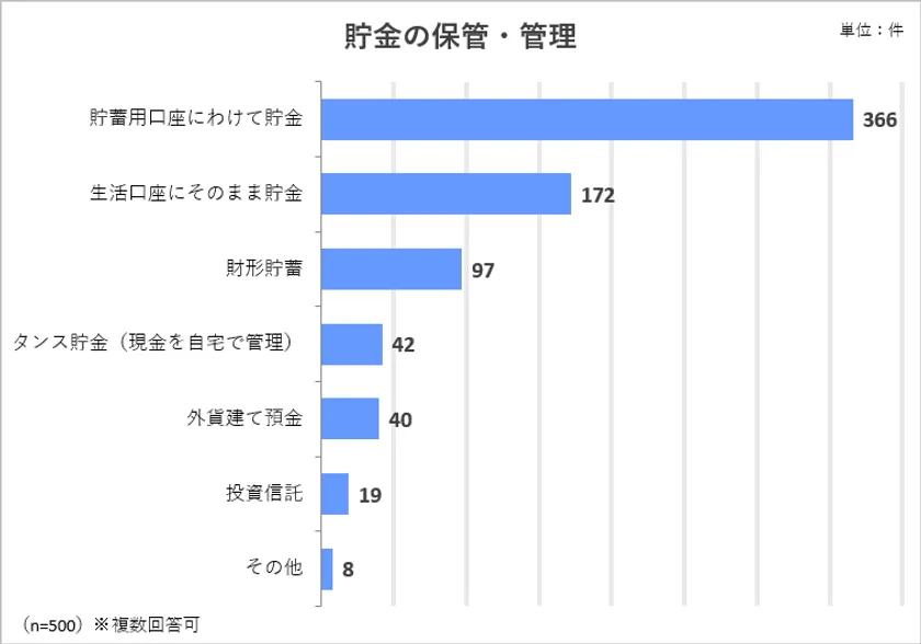 ●最も多い貯金の保管・管理方法は「貯蓄用口座にわけて貯金」