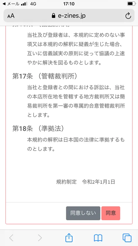 (4)利用規約を確認し、同意ボタンをクリック