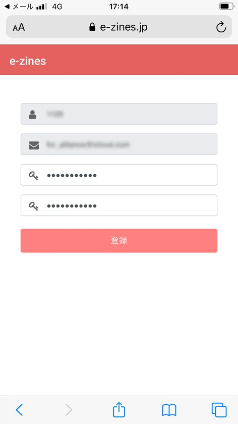 登録ページでパスワードを入力して登録ボタンをクリックすれば登録完了です。