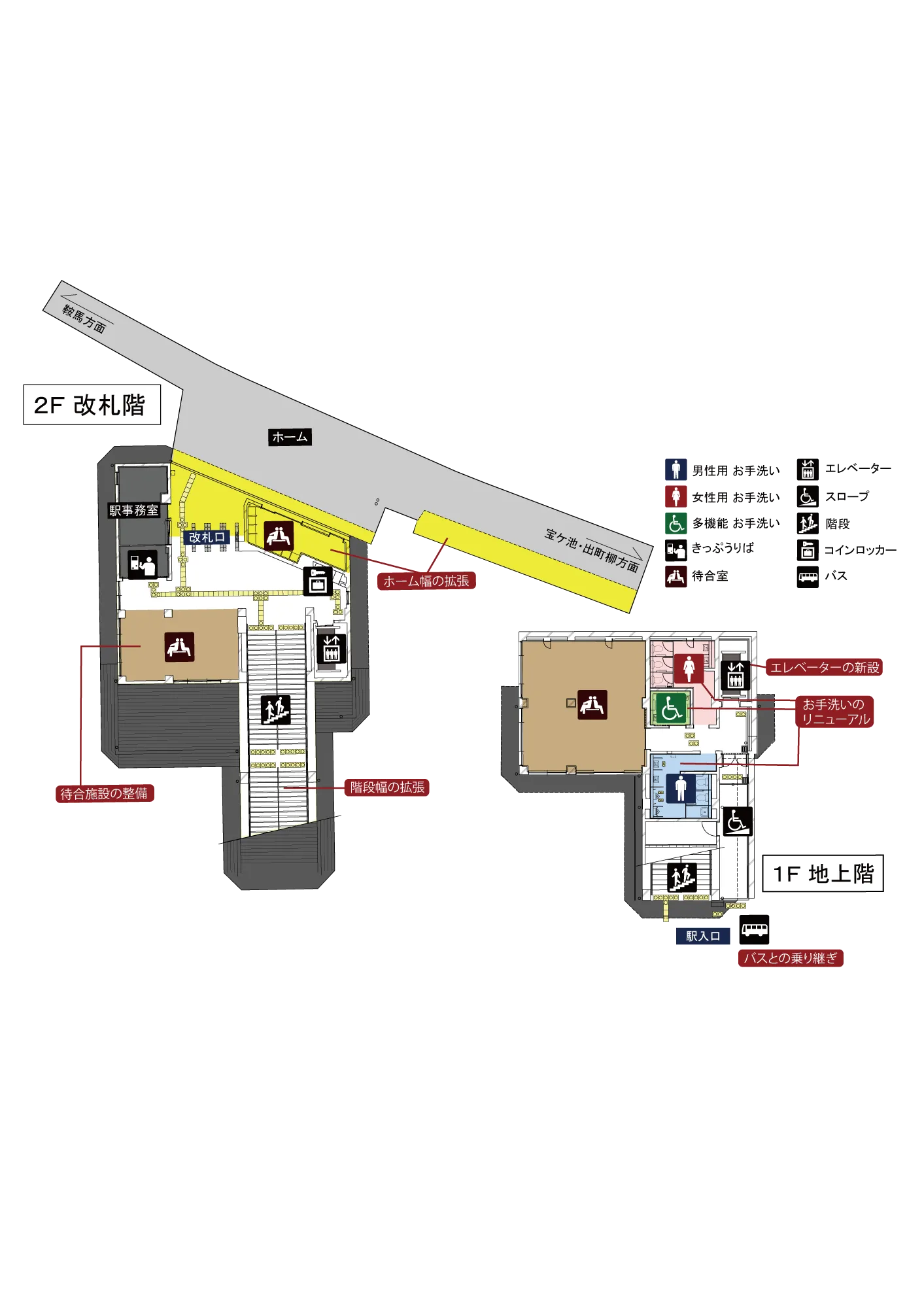 ホームおよび階段の幅を拡張し、観光シーズンなど混雑時における安全性を向上