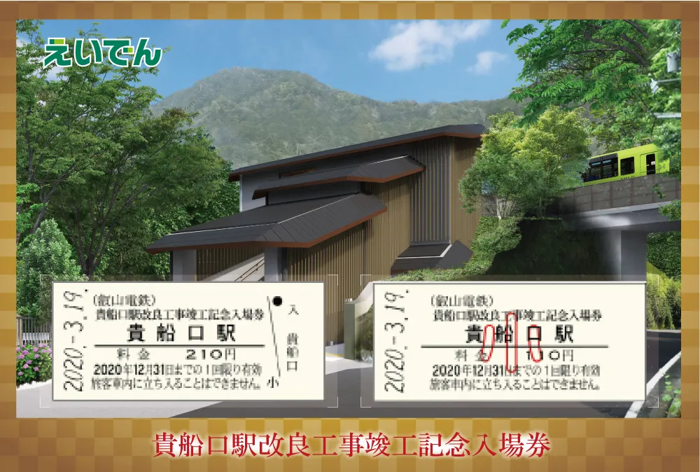 また、改良工事の竣工を記念して同日より「貴船口駅改良工事竣工記念入場券」を発売します。
