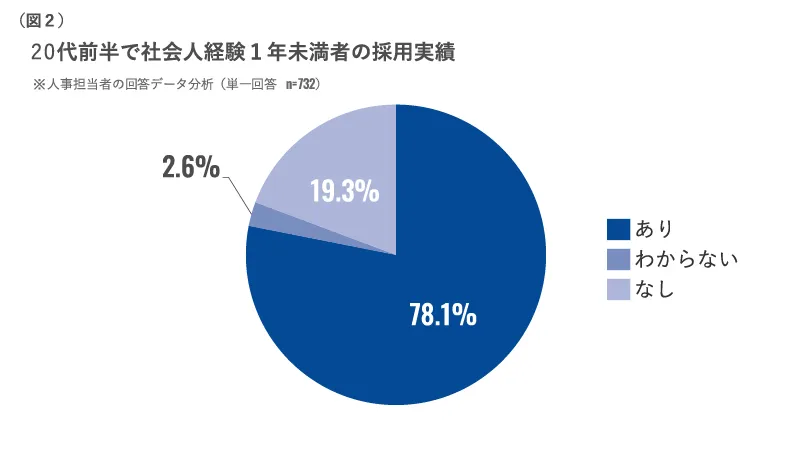 20代前半かつ社会人経験1年未満の採用実績がある企業は78.1%にも上ることが分かった(図2)。