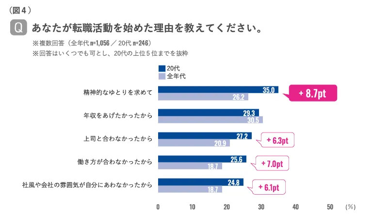 ■20代の転職理由は「精神的なゆとりを求めて」が最多