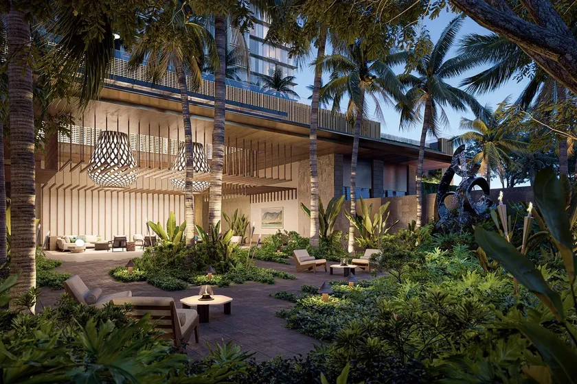 建物の設計デザインは「アナハ」も手がけたソロモン・コールドウェル・ブエンツが手がけており、外観のグレー掛かったガラスは、日中は反射ガラスになるため反射してプライバシーを保つことが可能です。その他にも、大きな戸建ての庭をそのまま持ってきたかのようなラウハラプールハウスや、用途に合わせた2種類のプール、Don Vitaが手がけた昔のハワイをイメージして造った大きなヤシの木が植えられている庭園などが特徴的です。