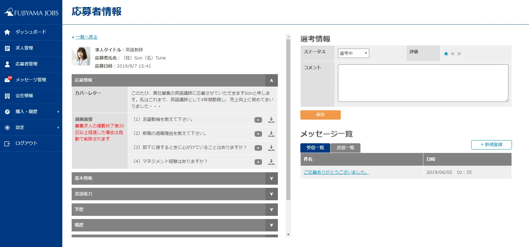 ■応募者情報の一元管理
