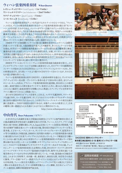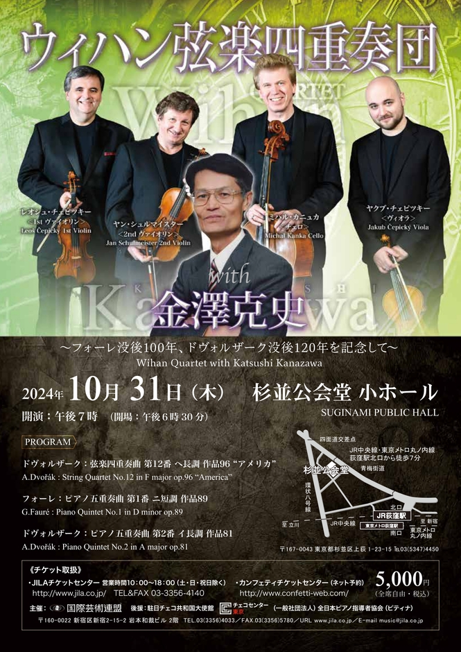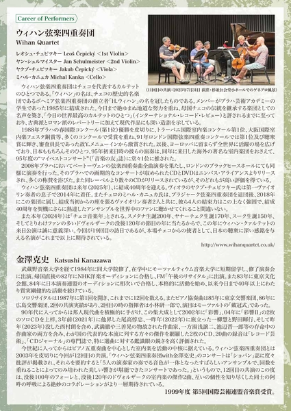 この偉大な作曲家たちの節目が重なる希少な音楽年を記念し、母国チェコの伝統を継承するウィハン弦楽四重奏団によるコンサートツアーを10月18日(金)東京~関西公演~東京3公演で10月31日(木)まで開催。