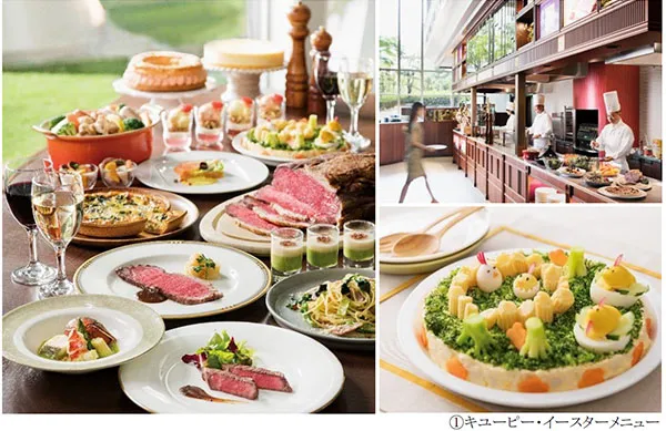 年々盛り上がりを見せるイベント「イースター」をイメージした品々が登場。森永製菓株式会社「チョコボール」のマスコット「キョロちゃん」とのタイアップで実現したイースターケーキや、キユーピー商品を用いた「ポテトサラダ」は、ひよこやにわとりを飾り付け。(画像(1)) また好評を博しているタイアップとして、2種類のハーゲンダッツアイスクリームと3種類のはちみつを選ぶ「ベリーパフェ」は、ランチ限定のライブデザートとしてお届けします。