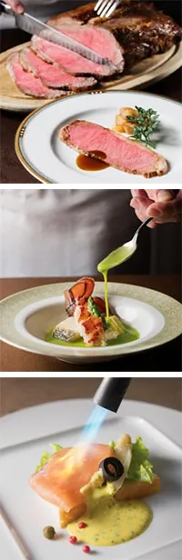 入学・卒業など新たな門出をお祝いするに相応しい「鯛」や「海老」、春ならではの「アスパラガス」や「鰆(さわら)」を使ったフランス料理のメインディッシュを出来たてで提供します。さらに、平日ランチ&ディナー・日祝ディナーは時間無制限で楽しめることも魅力です。