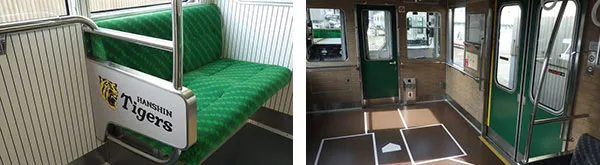 (左)タイガース号の内装、(右)甲子園号の内装