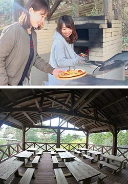 六甲山の自然溢れる、総座席数658席の巨大なバーベキュー場。雨でも安心の屋根付きエリアは女性の方や小さなお子様連れの方に大人気。アウトドア気分が味わえる木漏れ日エリアやワンちゃんと一緒に楽しめるワンちゃんエリア等、シーンに合わせてご利用いただけます。清潔なトイレやゴミ捨て場、洗い場も完備。園内には授乳室やおむつ替え室もあるので安心。食材注文やレンタル品も充実しているので手ぶらでバーベキューが楽しめます。また、食材持ち込み料が無いので、好きなメニューと組み合わせて自分好みのバーベキューができます。土日祝限定で注文できる本格石窯ピザは盛付けと焼上げ体験ができる人気メニューです。