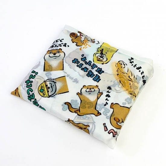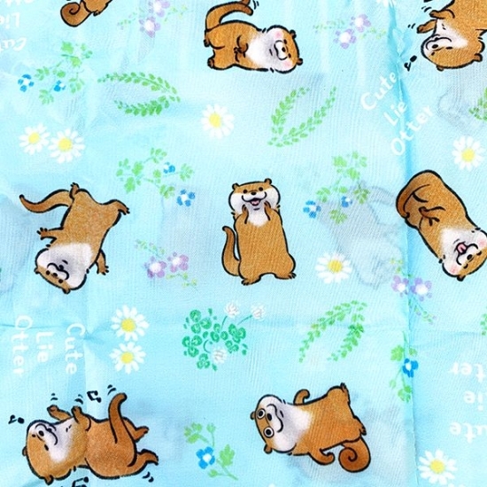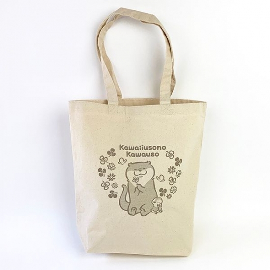 いろんな表情のカワウソが楽しめます。小花柄がきれい。エコバッグ、2柄あるんです。どちらにしますか?