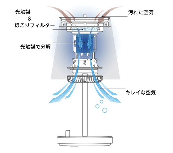 フィルターに有害物質を吸着させる空気清浄機とは構造が根本的に違うので、安心してお部屋に置くことができます。