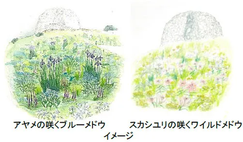 今年は「アヤメの咲くブルーメドウ」(5月下旬~)と「スカシユリの咲くワイルドメドウ」(7月上旬)が楽しめます。