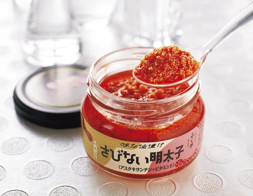 ■おいしいだけではない、体にいい明太子・アスタキサンチン+ビタミンE配合「味な油漬け さびない明太子」