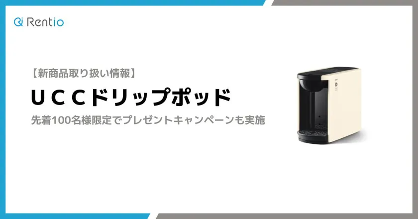 家電のレンタルサービス「Rentio」を手がけるレンティオ株式会社(所在地:東京都品川区、代表取締役:三輪 謙二朗)は、UCCグループのソロ フレッシュコーヒーシステム株式会社(所在地:東京都港区、代表取締役社長:柳原 優樹)と提携し、UCC ドリップポッドマシンの取り扱いを2020年2月28日(金)より開始いたしました。取り扱い開始に伴い、対象商品を注文された先着100名様限定で「お試しアソートセット」のプレゼントキャンペーンを実施いたします。