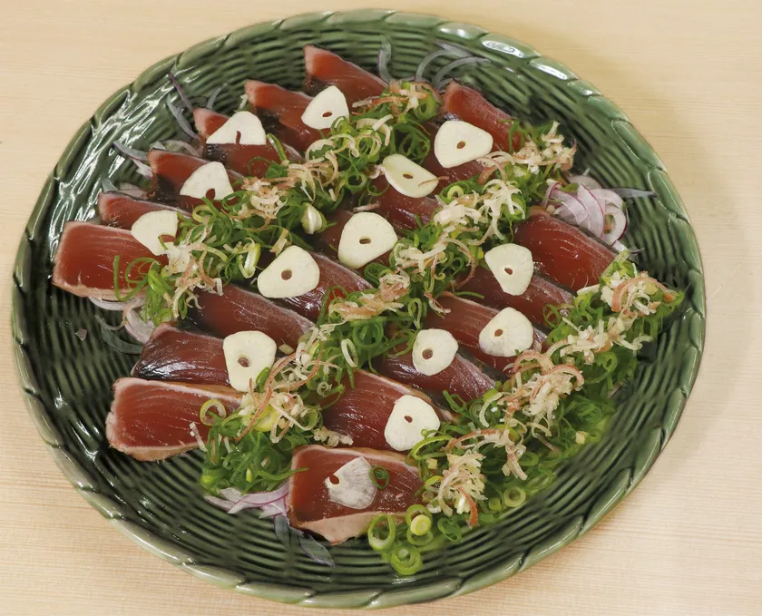 藁焼きされた鰹の香りと食感を鰹叩きタレでご堪能ください。