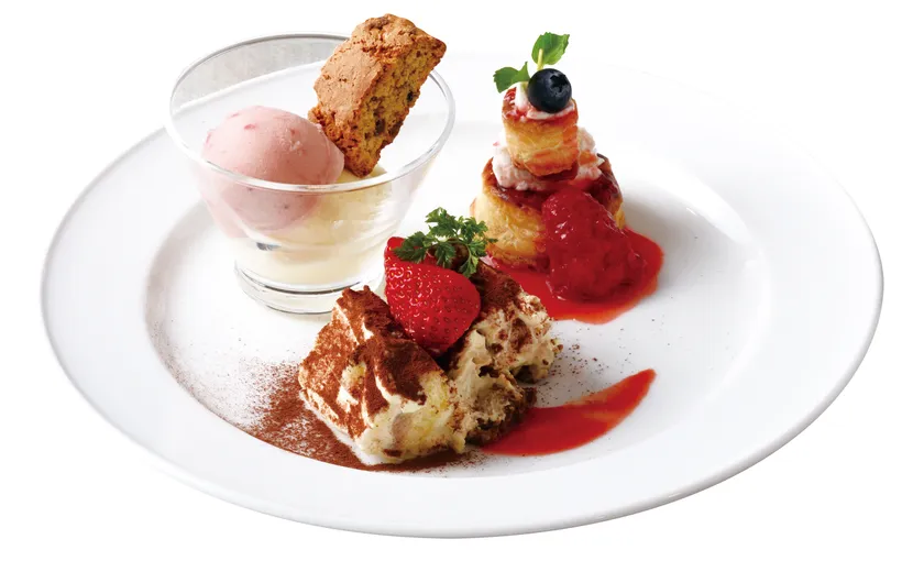苺のジェラートパフェ 単品:¥1,520/セット:¥1,848