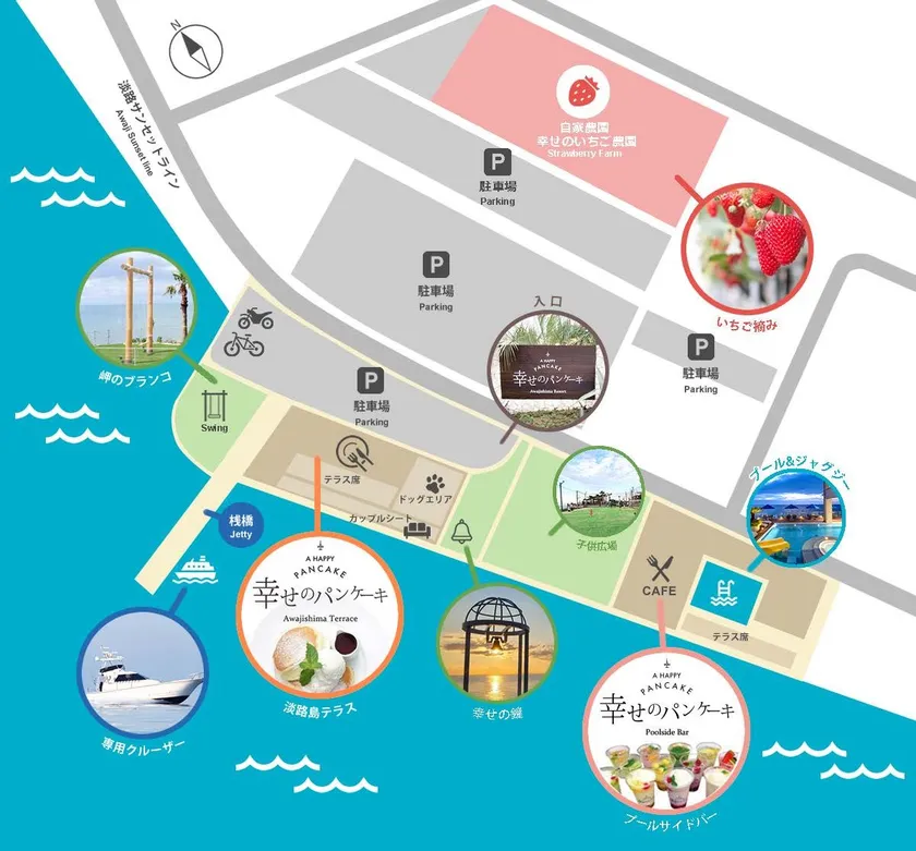 淡路島リゾートには「淡路島テラス」と「淡路島カフェ」の2つのエリアにてお客様をお待ちしております。