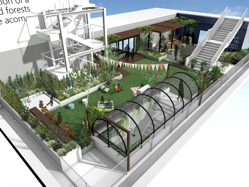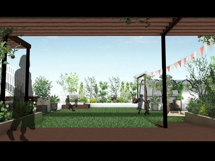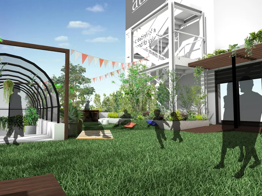 地域居住者の憩いの場として大人から子供までくつろげる屋上庭園に