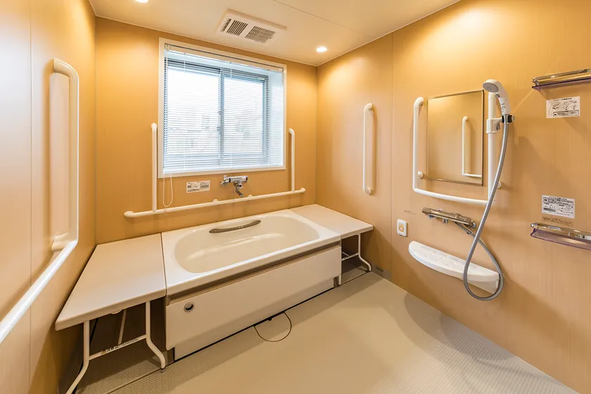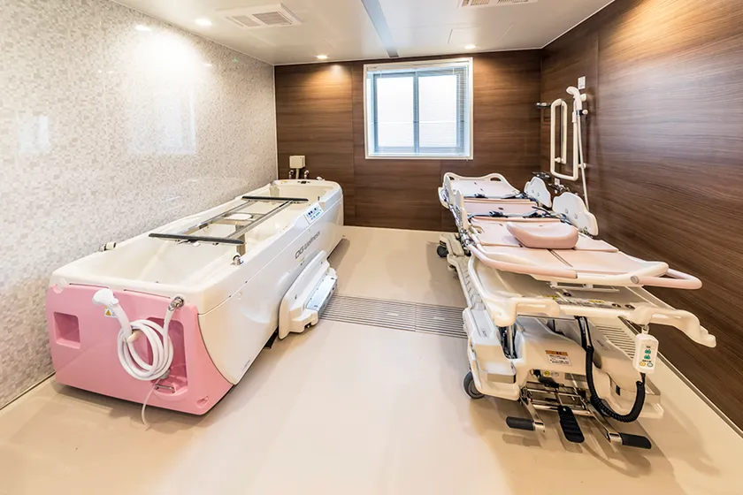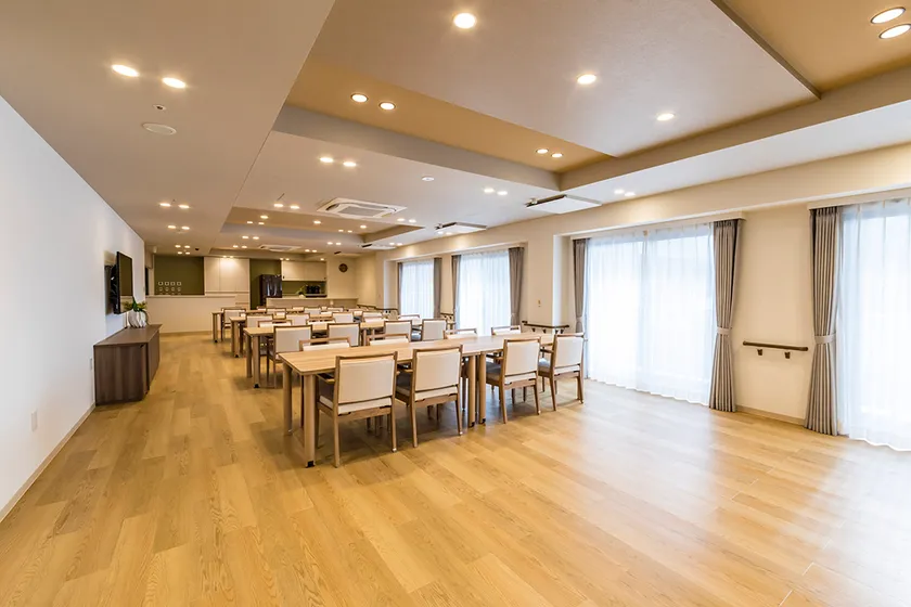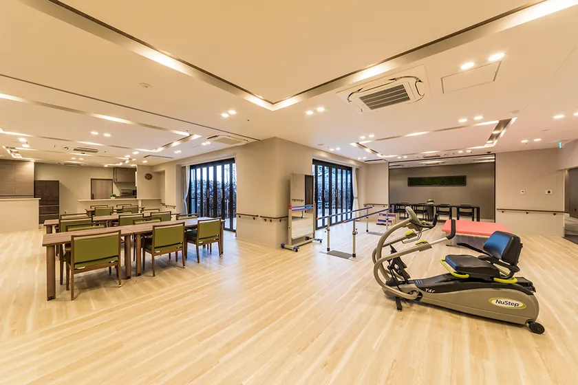 アズハイムシリーズ全体でケアスタッフによる「生活リハビリ(日常生活動作の反復訓練)」に力を入れおり、1ホーム1か月「1,000回」を目指し、毎月全事業所で生活リハビリの回数を発表し合っております。また、セントラルスポーツとの提携による「チェアアクティブ」(健康椅子体操)も取り入れ、ご入居者の体力維持や健康づくりをサポート。「アズハイム横浜戸塚」にも機能訓練指導員1名配置。機能訓練エリアは、パーテーションで仕切ることもでき、プライバシーにも配慮いたしました。
