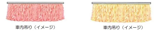 リボンテープを使用し、カラフルなイソギンチャクをイメージした車内吊りを設置します。イソギンチャクを模したリボンテープの合間からは、カクレクマノミが顔を覗かせます。