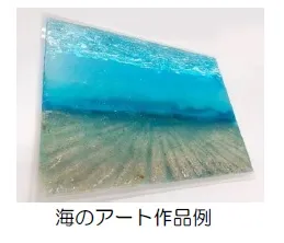 品などを展示します。海のアート作品は、水の部分はレジン、砂は本物