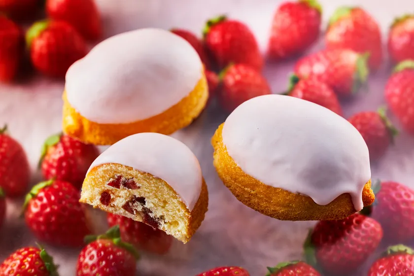セミドライの苺をたっぷり混ぜ込んだパウンド生地にストロベリーチョコレートをコーティングし、チョコレートの甘みと果肉のやさしい酸味が絶妙にマッチした心地よい贅沢感を感じるストロベリーケーキです。春の爽やかさを感じるフォトジェニックなパッケージは、ホワイトデーはもちろん、大切な人への手土産やお招きする際のゲストスイーツとしてもおすすめの商品です。