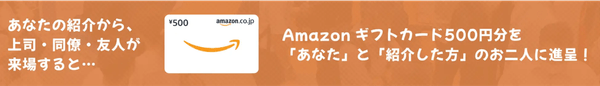 また、Amazonギフトカードがもらえる紹介キャンペーンも実施しております。