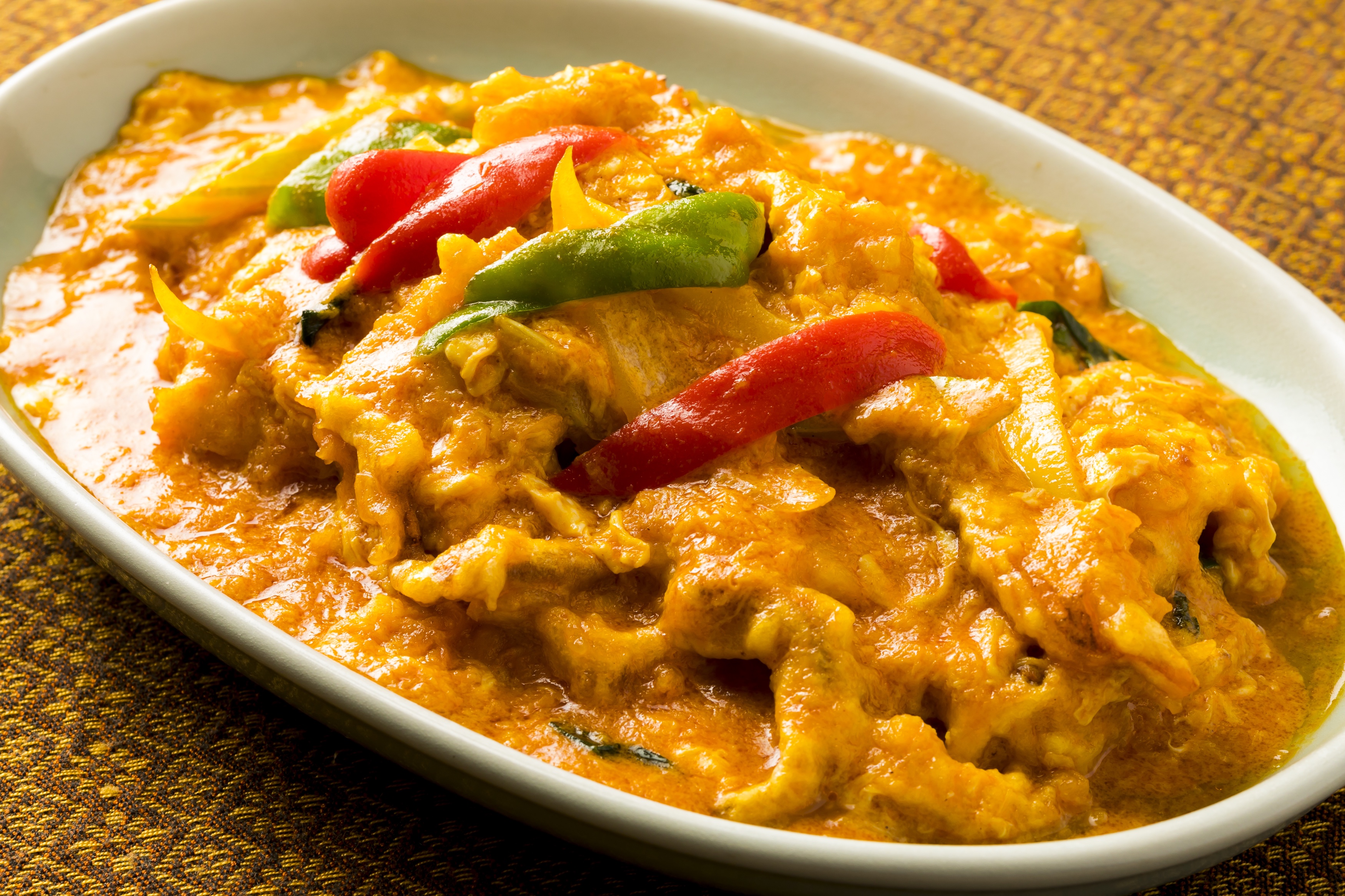 ソフトシェルクラブとふわふわ卵のカレー炒め。インド料理の影響でタイ料理にカレー粉を使うことは珍しくないですが、ふわふわな卵とじにする点は何とも中華料理のよう。タイ料理らしい“食のモザイク”を楽しめます。