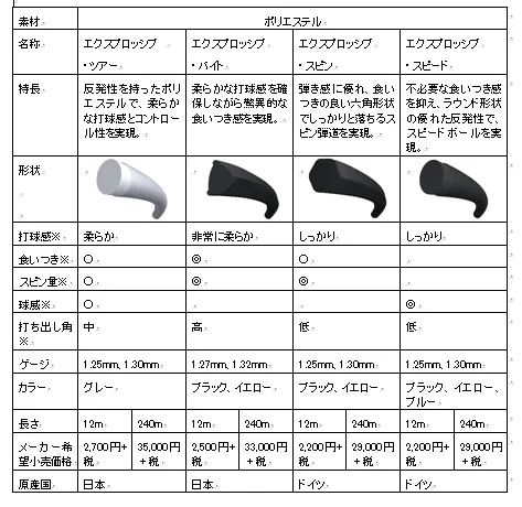 種類ごとに異なる断面形状を採用し、打球感と弾き感を最適化。打ちたいショットに応じた選択が可能になりました。「エクスプロッシブ」は、英語で「爆発的な」という意味で、力強さをイメージしています。