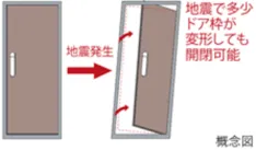 各住戸の玄関には、ドアとドア枠の間に適度なクリアランス(隙間)を設けた対震枠付玄関ドアを採用。地震により玄関ドア枠が多少変形してもドアが開閉できます。
