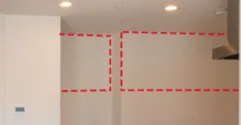 食器棚や冷蔵庫が地震で倒れないように、キッチンの食器棚スペース及び冷蔵庫置場の背面の壁に転倒防止対策ができるよう下地補強を施しています。