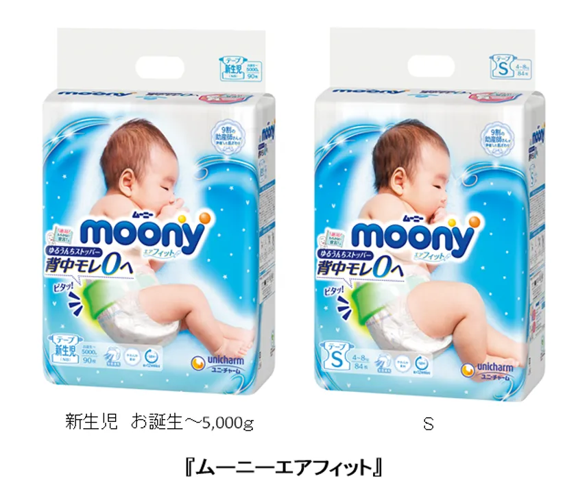 ユニ・チャーム株式会社(本社:東京都港区、代表取締役 社長執行役員:高原豪久)は、育児される方の負担軽減のために、ゆるゆる便の背中モレを防ぐ、特許技術の“ゆるうんちストッパー”を搭載した「ムーニー エアフィット※1」を、4月上旬より全国で発売します。