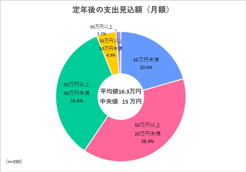 定年後の支出見込額(月額)の平均値16.3万円、中央値15万円