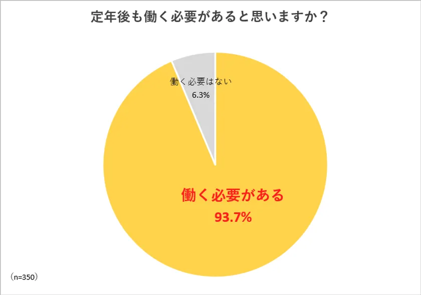 定年後も働く必要があると思いますかという問いに対し、93.7%が「働く必要がある」と回答しました。