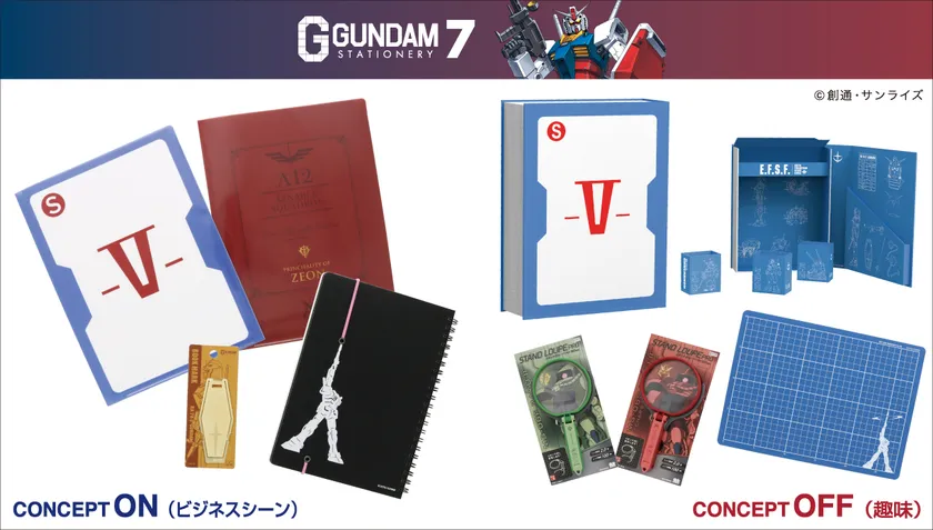 「コンセプトON」はビジネスシーンでもより使いやすくなったスマートなデザインの商品、「コンセプトOFF」は趣味で模型製作などをする人をメインターゲットにした商品です。ガンダムファンのビジネスシーンや趣味のひと時を豊かに彩ります。