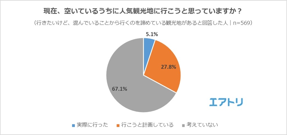 「行こうと計画している」と回答した人は27.8%、更に5.1%の人は「実際に行った」と回答しました。
