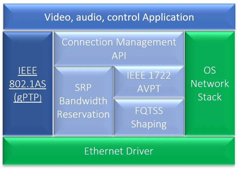 Excelfore gPTPソフトウェアは、車載ネットワーク デバイスの同期に使用され、オーディオ ビデオ ブリッジング(AVB)および時間依存ネットワーキング(TSN)のソフトウェアのコア コンポーネントを形成します。