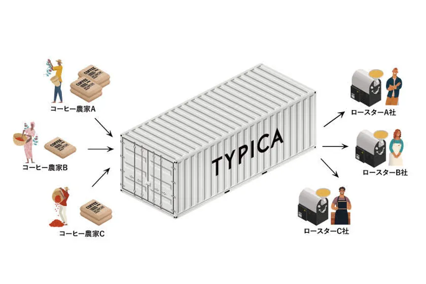 「TYPICA」では、オンラインプラットフォームに想いやこだわりなども含めた生産者の情報を掲載し、サンプル依頼や注文、お客さんの反響や要望などの相互コミュニケーションがとれるようになります。生産地ごとに複数のロースターの注文をとりまとめ、ひとつのコンテナで輸送します。流通を最適化するとともに、生産者や物流事業者がいくらの収益を得ているかの情報を見える化し、経済透明性を確保することで、適正な価格でコーヒー豆を届けます。