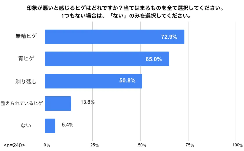 85%の女性が「ヒゲがない方が良い」女性240人に聞いた 男性フェイスケアへの印象【ヒゲ脱毛意識調査】