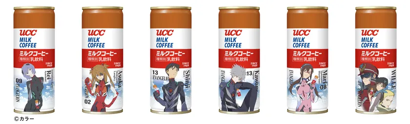 『ヱヴァンゲリヲン新劇場版:破』が公開された2009年には『UCC COFFEE ミルク&コーヒー ヱヴァンゲリヲン 缶250g -2009年度バージョン-』を発売し、さらに『ヱヴァンゲリヲン新劇場版:Q』が公開された2012年に『UCC ミルクコーヒー ヱヴァンゲリヲン缶250g』を発売しました。