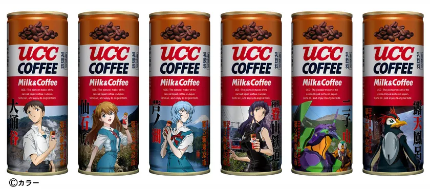 UCCは、1995年より放映されたテレビアニメ『新世紀エヴァンゲリオン』の作中に、『UCC ミルクコーヒー』に似た缶コーヒーが登場したことをきっかけに、タイアップ缶の発売を提案。同アニメの劇場版『新世紀エヴァンゲリオン劇場版 Air/まごころを、君に』が公開された1997年には第1代目のタイアップ缶『UCC オリジナル エヴァンゲリオン缶250g』を発売しました。