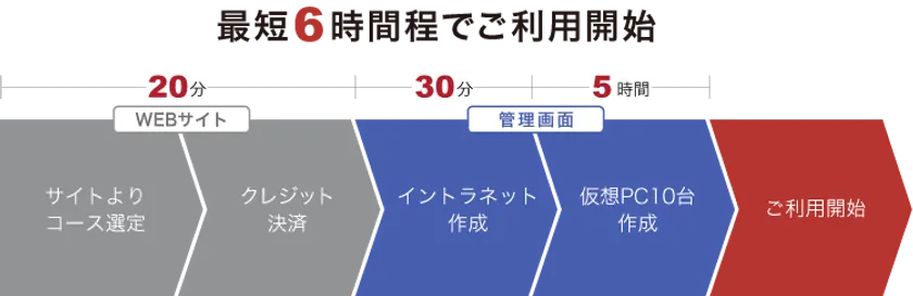 簡単なユーザインターフェースで、Webブラウザから半日程度でテレワーク環境を構築することができます。